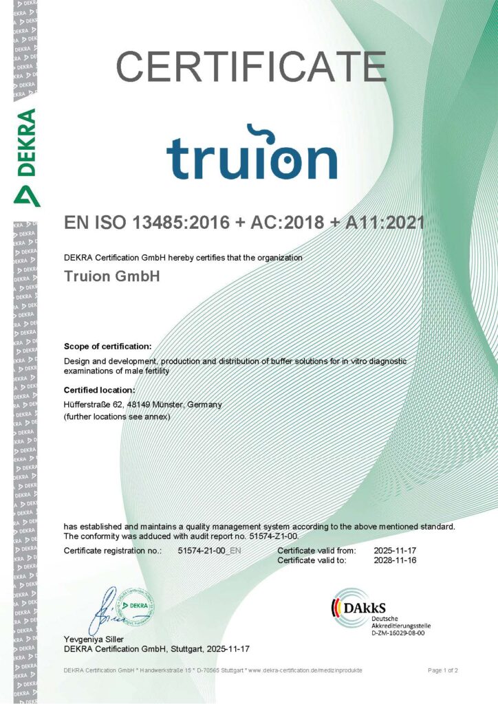 For us at Truion, this milestone is more than a certification β itβs a commitment. A commitment to delivering trustworthy and impactful solutions in male reproductive health and ensuring that our technologies consistently meet the rigorous expectations of patients, clinicians, and partners.